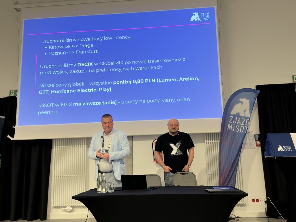 EPIX od lat pozostaje jednym z najważniejszych punktów wymiany ruchu IP w Polsce. Jego rola w ekosystemie telekomunikacyjnym stale rośnie, a kolejne kwartały przynoszą zmiany, które nie tylko wzmacniają infrastrukturę, lecz także zmieniają zasady gry dla operatorów. Ostatnie miesiące pokazały, że projekt nie stoi w miejscu, lecz dynamicznie odpowiada na potrzeby rynku i planuje przyszłość z rozmachem, jakiego wcześniej nie widzieliśmy. Opowiedzieli o tym Paweł Białas, dyrektor sprzedaży i rozwoju Grupy MiŚOT, i Łukasz Biernacki, lider Projektu MdO, podczas X Jubileuszowego Zjazdu MiŚOT w Łochowie.