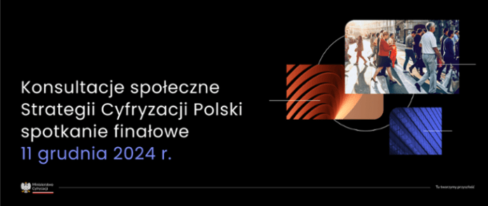 11 grudnia 2024 r. zakończą się pierwsze publiczne konsultacje projektu Strategii Cyfryzacji Polski. Odbędzie się wtedy na spotkanie podsumowujące ten proces. Zgłoszenia do udziału w spotkaniu przyjmowane są do 5 grudnia 2024 r.