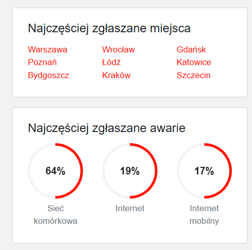 Problemy pojawiały się we wszystkich większych miastach w kraju. Głównie dotyczyły połączeń głosowych. Podczas próby ich wykonania użytkownicy otrzymywali komunikat o problemie z zarejestrowaniem w sieci. Tak, jakby sieć, w której chcą wykonać połączenie, nie istniała.